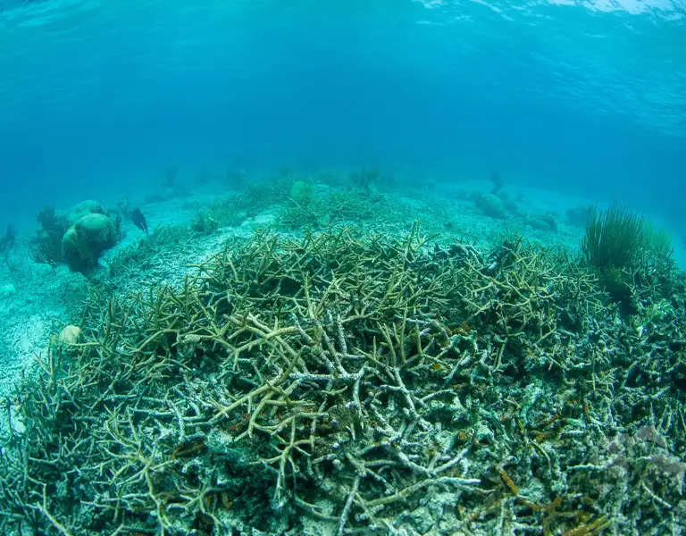 Drag slider to compare healthy vs dead coral reefs